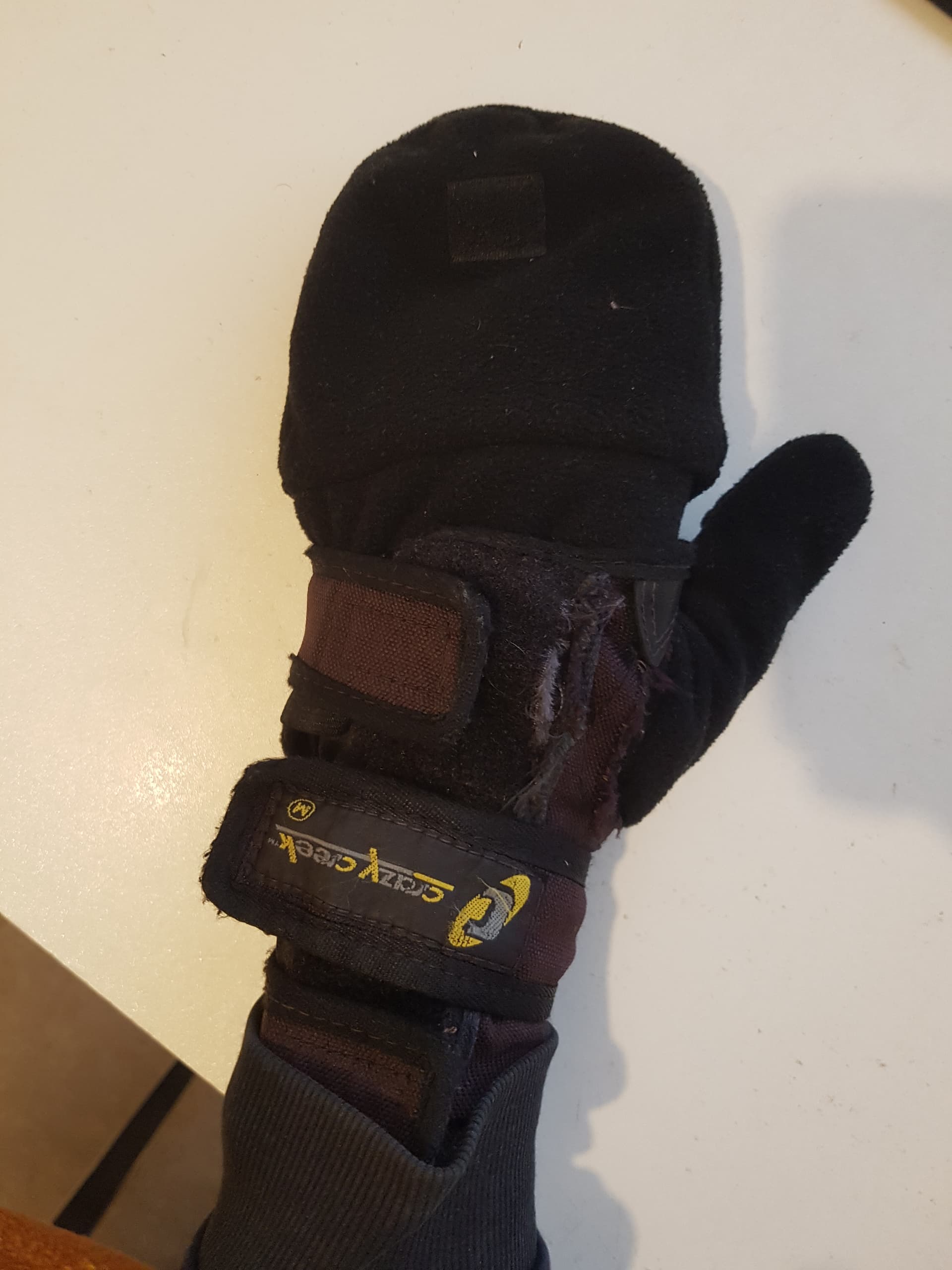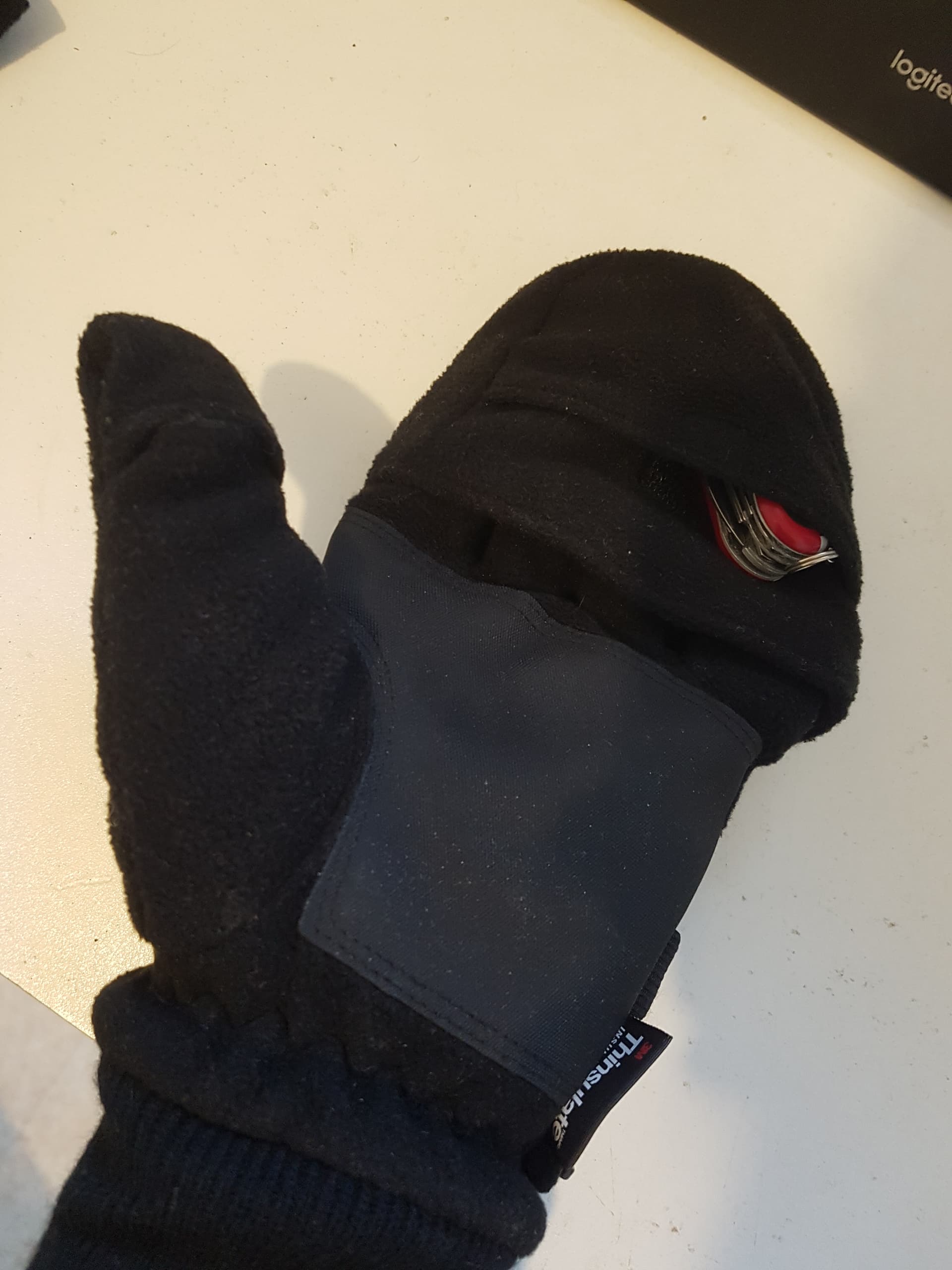 Mon gant-moufle-rabattable trop grand de marque Dickies (enfin je dis « mon » mais j’en ai deux hein). Il me semble qu’à la base c’est des gants pour travailler en extérieur dans le froid…