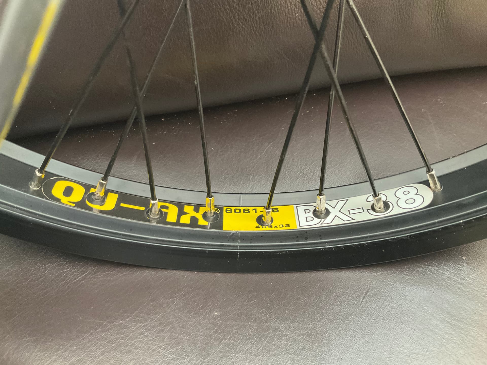 Sur la jante, tu peux voir inscrit « 406 x 32 ». Le premier chiffre est le diamètre du pneu à respecter. Sur le pneu, tu devrais donc avoir un marquage similaire, qui contient 406. Si ce n’est pas le cas, alors le pneu n’est effectivement pas compatible.