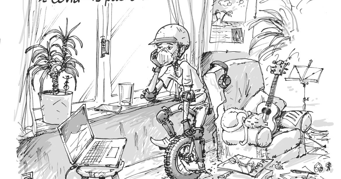 Toujours du mal à monter les côtes et à tenir la poignée pour pousser sur les pédales. Je contrôle mal mon équilibre. Idem pour les descentes, freiner m’emmène à droite ou à gauche. Je finis dans le décor.
