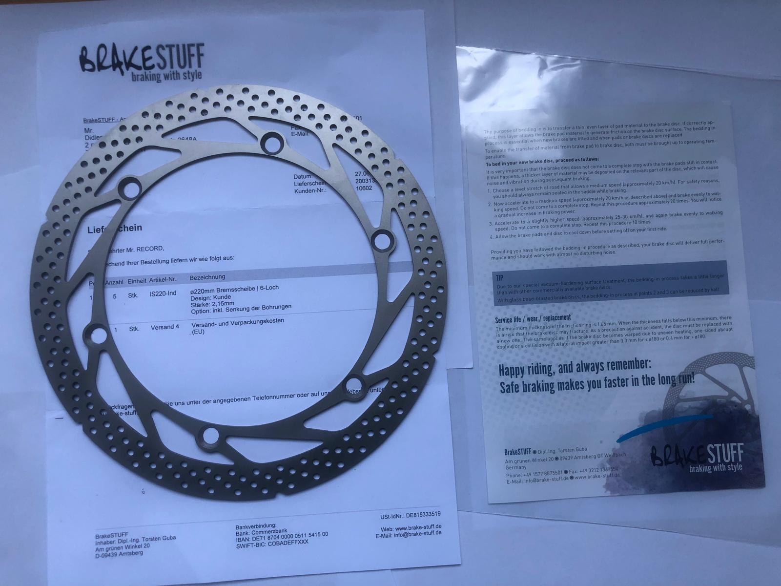 Brakestuff n’est pas mort, Torsten est en train de finaliser l’usinage de 5 disques prototypes pour mon projet de moyeu à vitesses. Il est en discussion pour vendre son entreprise et si cela se concrétise, il sera possible de passer de nouvelles commandes comme il me l’a écrit récemment …