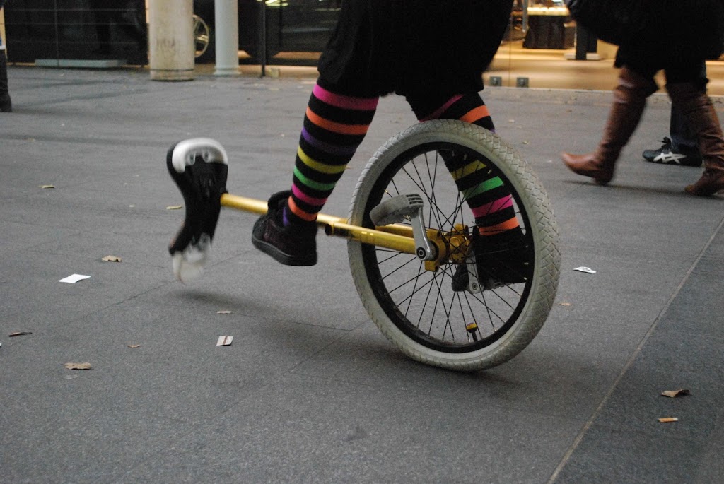 Au fait, merci mille fois Arthur pour avoir organisé cette session. Merci également pour m’avoir aidé à retrouver mes affaires, merci à Léo (Okux) par la même occasion qui s’en est chargé. Merci enfin pour tes encouragements et ceux de Bruno. Bruno disait en me voyant qu’aujourd’hui, tout le monde sait coaster - ça m’encourage, mais qu’il se rassure, ce n’est pas encore folichon et ça ne se fait pas sans douleur non plus. Sans parler du fait que je ne progresse jamais sans avoir dépassé de longues phases de regression déprimante, en octobre dernier, j’avais le talon quasiment fêlé : à force de tomber de mes semi-coasts toujours sur le même pied et malgré de bonnes chaussures, j’ai eu une forte douleur au talon qui se manifestait dès que je posais le pied par terre. Bref, ce n’est pas le sujet. Se réunir tous à Paris, le bon esprit, les photos (merci Noctambule, supers photos, y a pas à dire ; et dans l’attente de trouver un moyen de les voir, merci Simon des tiennes), le jonglage, le partage de techniques, rencontrer les pseudos en vrai, tout ça, c’était super sympa. Décidément, j’aime notre sport et son petit effectif.