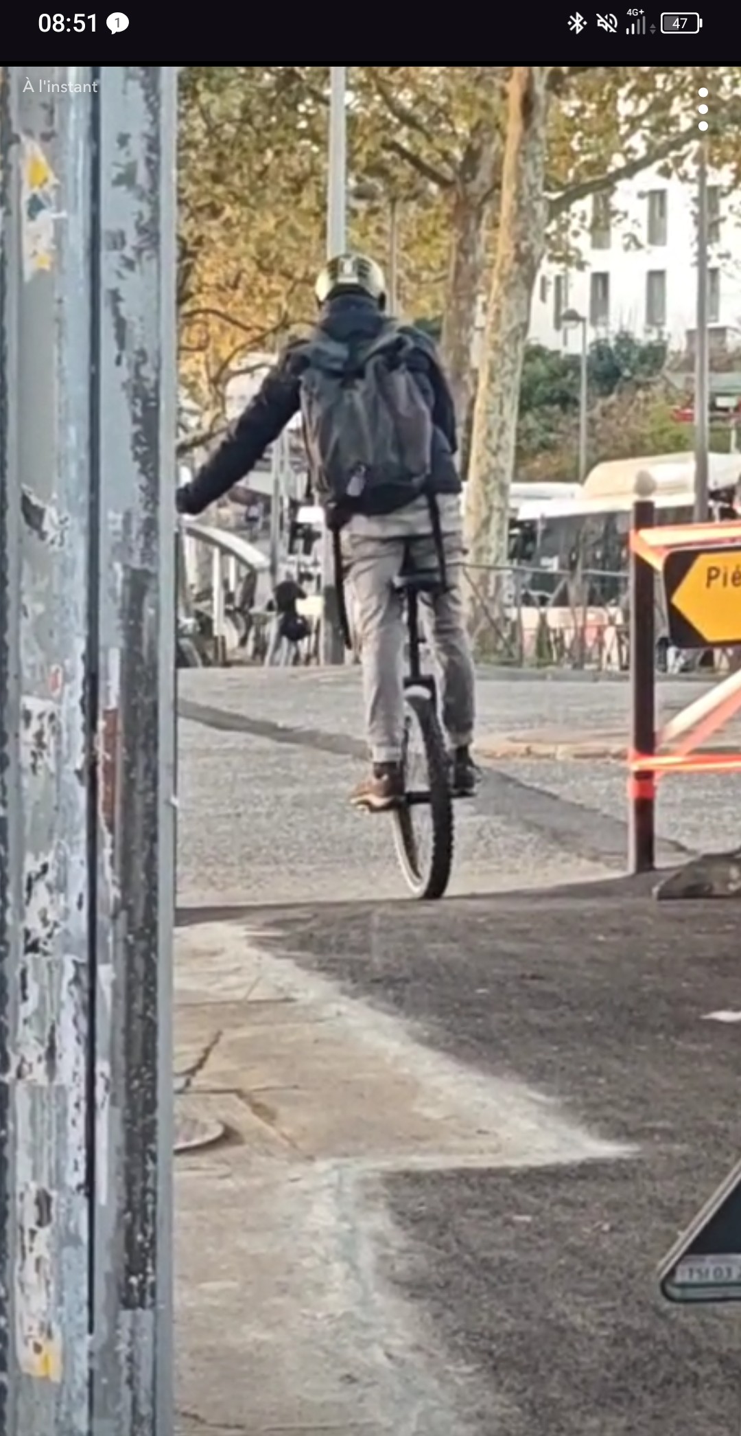 De la famille m’envoie une photo ce matin. Un monocycliste pris en flagrant délit de circulation ![]()