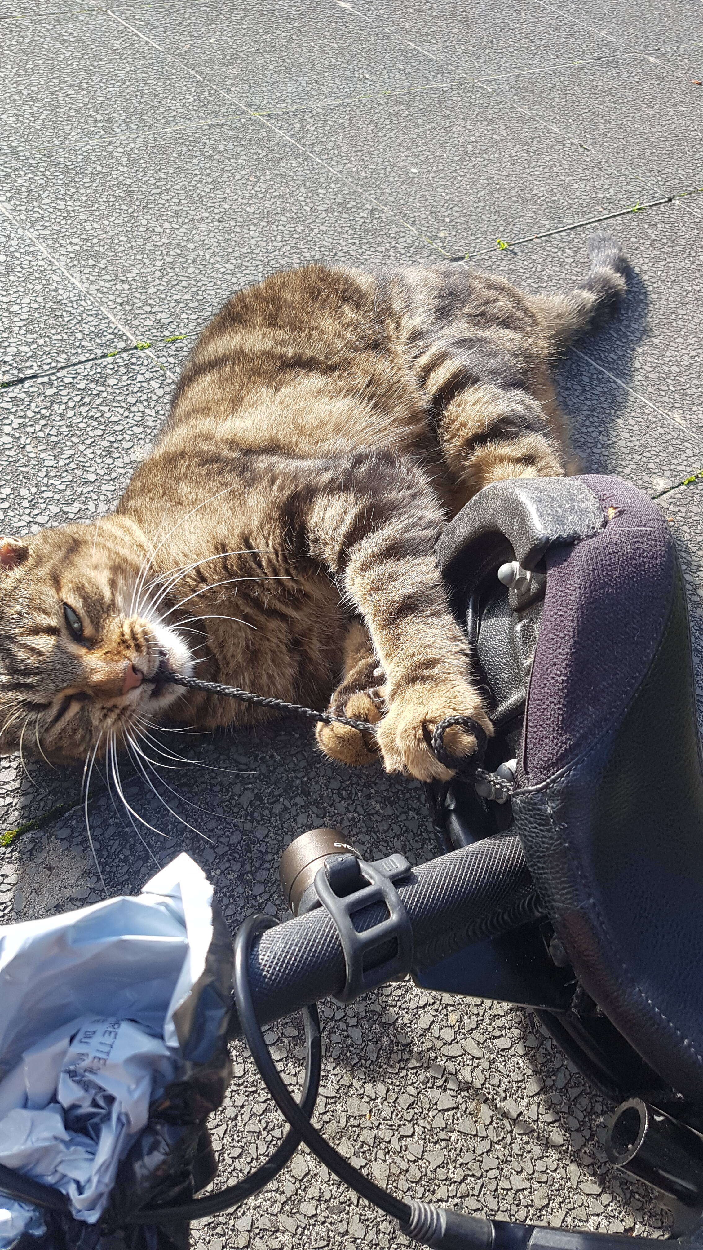 C’est pas vraiment un passant (quoiqu’en fait si), un chat qui zone souvent à l’endroit où je fais mon pique-nique quotidien (hors confinement). La dernière fois, il s’est mis en tête de déglinguer mon matériel :