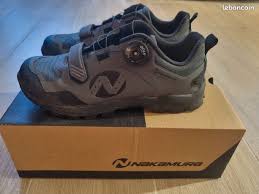 Initialement, je venais pour lui acheter une paire de Shimano MT7 en Gortex, elles étaient vraiment top, mais se sont avérées trop petites ; le vendeur m’a alors proposé cette paire de Nakamura MTB Casual 20 (son fils ne cesse de grandir) ; elle sont de moindre qualité peut-être (sur le moment, j’étais déçu), mais elles sont confortables, à ma taille et n’ont finalement pas l’air si mal, les avis des utilisateurs le confirment.