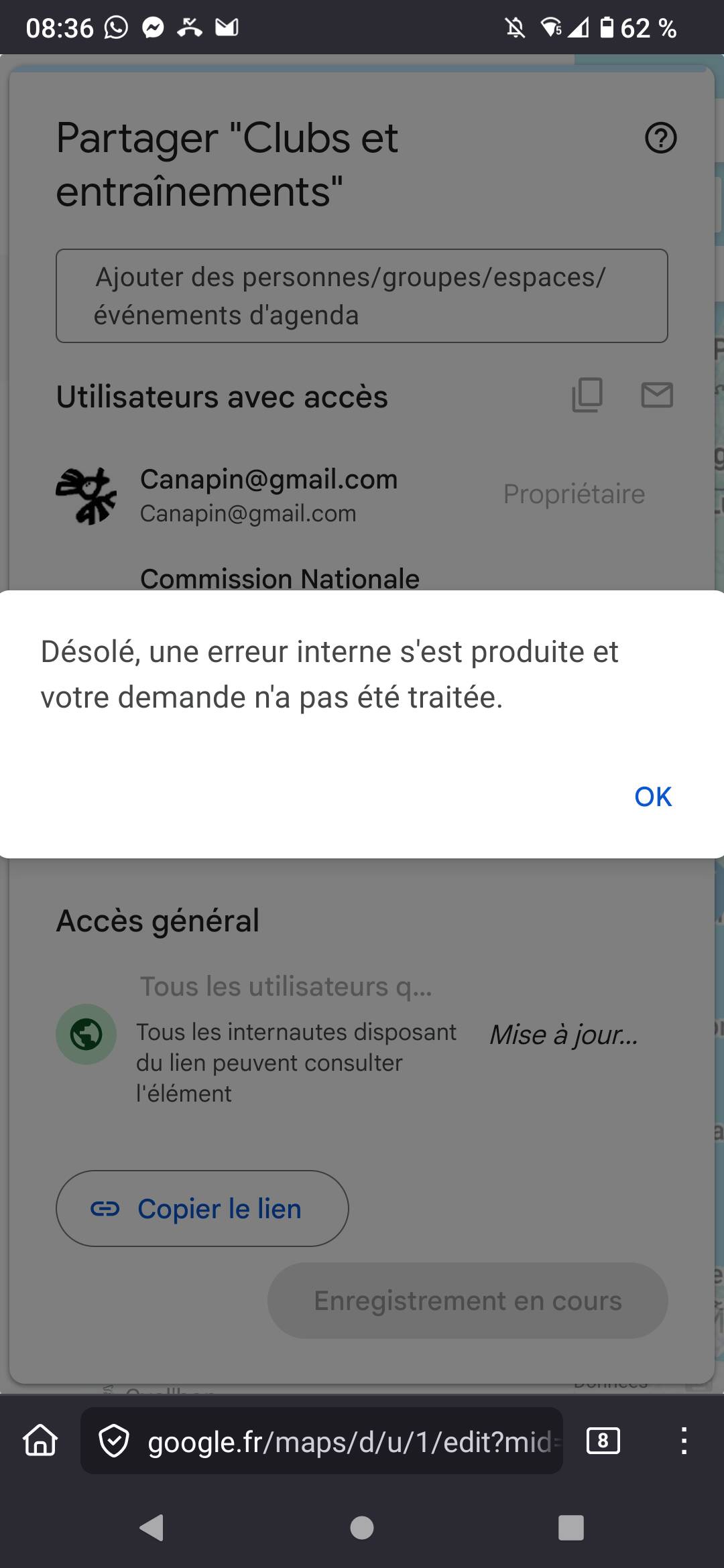 J’arrive à l’ouvrir mais plus à la modifier (de mon compte google ou de celui de la CNM). Je ne sais pas si ça a un lien avec la maintenance ? Ou si ça vient de la manip’ que nous avions faite pour donner les droits d’édition à la CNM ?