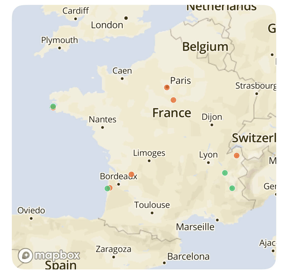 On peut voir notre avancement sur une région (pays ou département).
