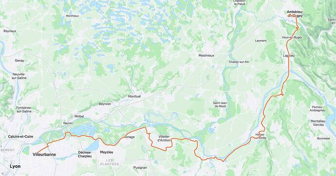 Il y a deux semaines, je suis parti pour rejoindre Annecy depuis Lyon en suivant la Via Rhona. Au programme, 210 km et une peu de D+ (~1500 ou 2000m, je ne sais plus trop). Bon, ça ne s’est pas passé comme prévu. Déjà, comme on peut l’anticiper en réfléchissant un peu, remonter le cours d’eau d’un fleuve… Ça monte. C’est pas une grosse pente, mais ça reste un faux plat montant continu. Et long. Rajoutez à ça un vent de face assez fort pour qu’on le ressente et ça donne un beau petit défi.