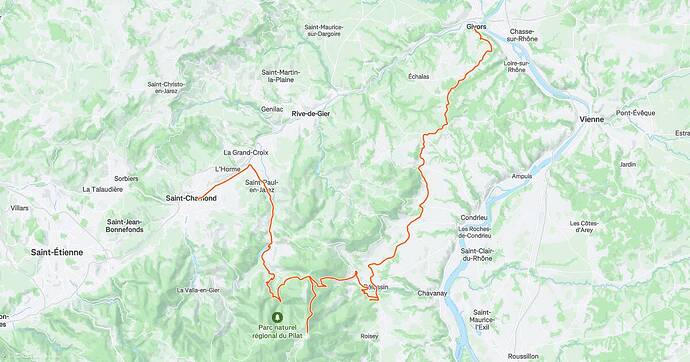 La fin de cette escapade était sur la départementale, avec quelques voitures qui roulaient trop vite à mon goût, et une arrivée dans Saint-Chamond peu de temps avant le train. Et la fin de la fin… 3 km de faux-plat montant. Alors qu’on était tous les deux cramés ![]()