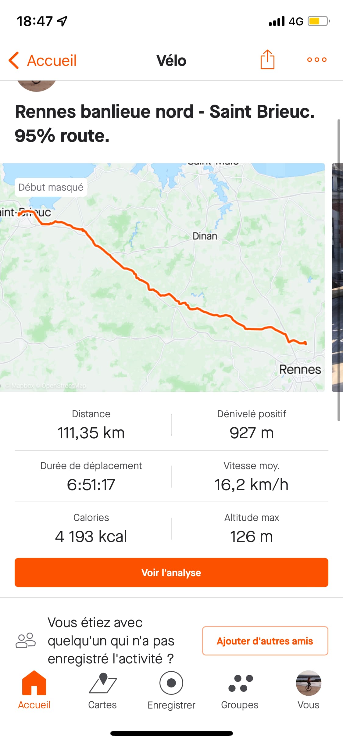 Bravo à toi, 111 c’est énorme (c’est plus que ce que j’ai aimé de mon century). Surtout que je crois que tu roules en 36/100, donc sur la fin ça devait être bien complexe de pousser sur les pédales. Déjà qu’en 29/100 c’était infernal.