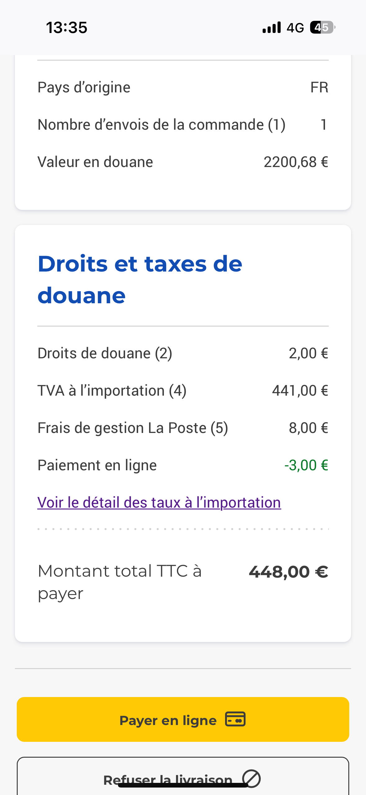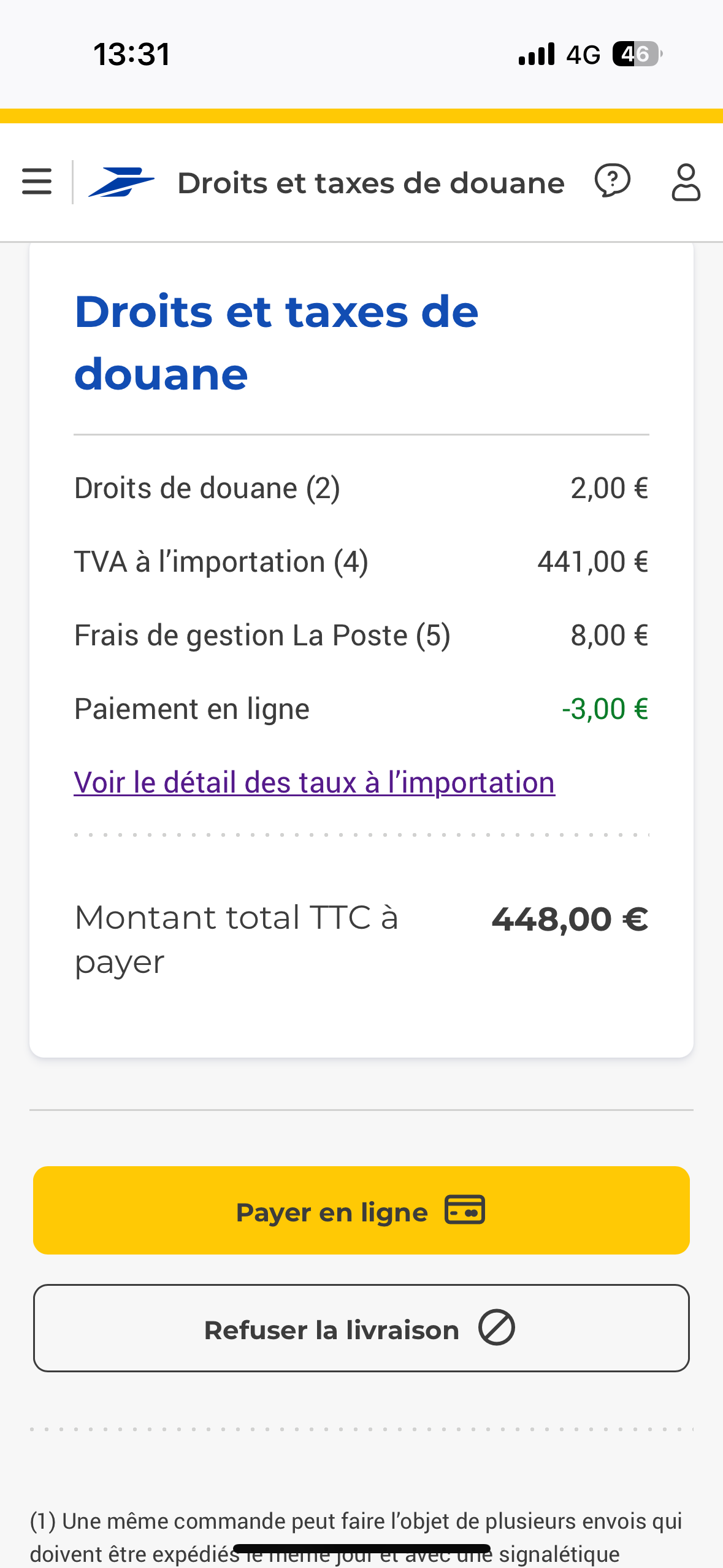 En général, il faut payer… si @Aurélien n’a pas eu à payer peut être que la douane était en grève ![]()