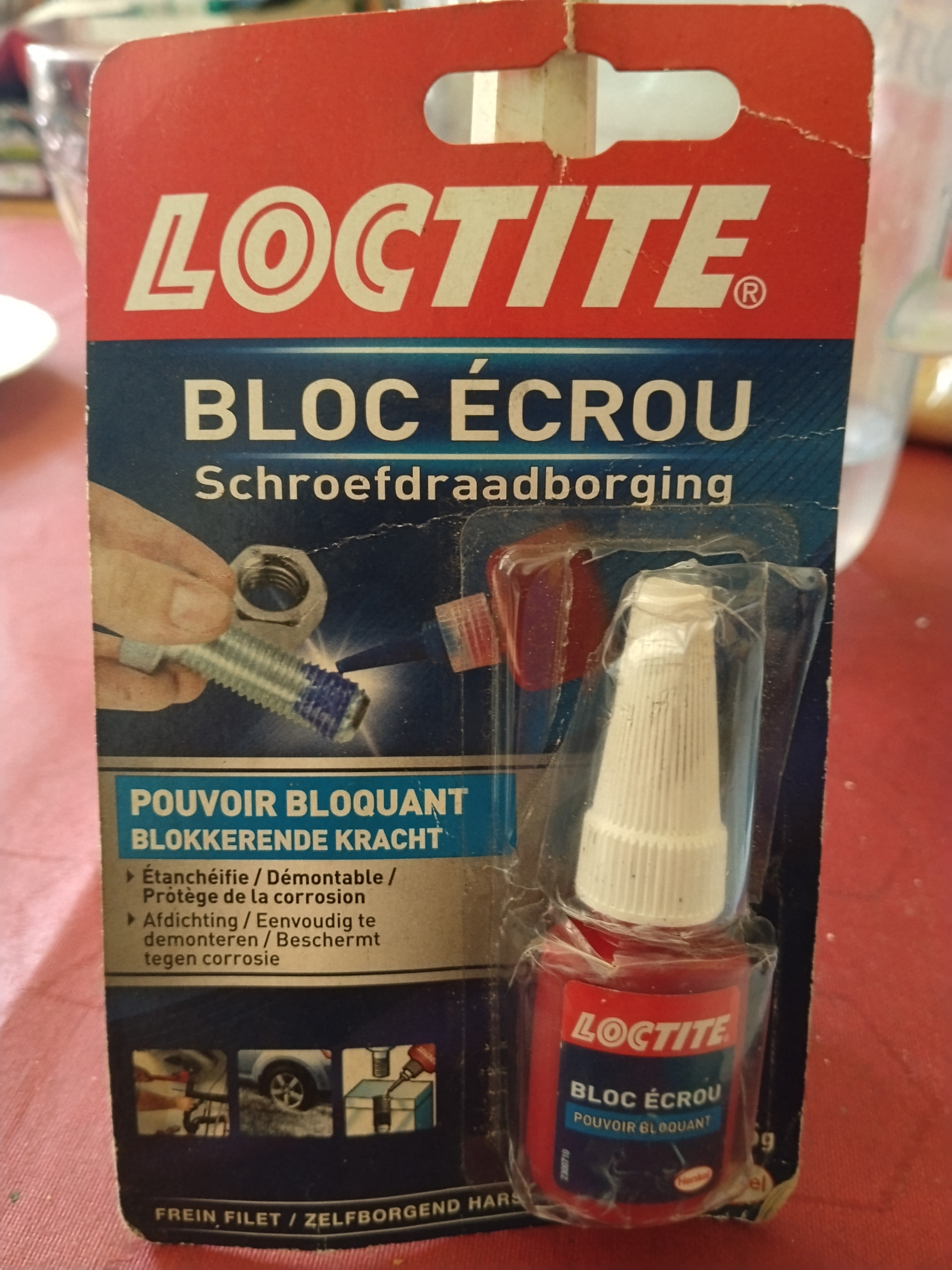 ou Loctite " bloque écrou " qu’on trouve généralement dans les supermarchés.