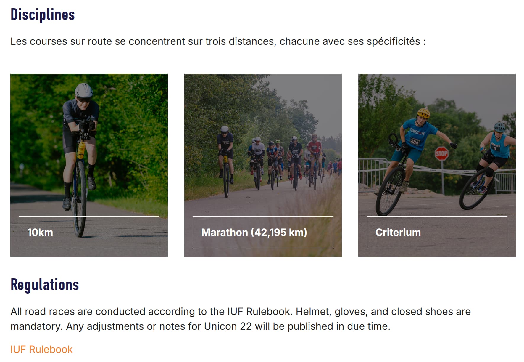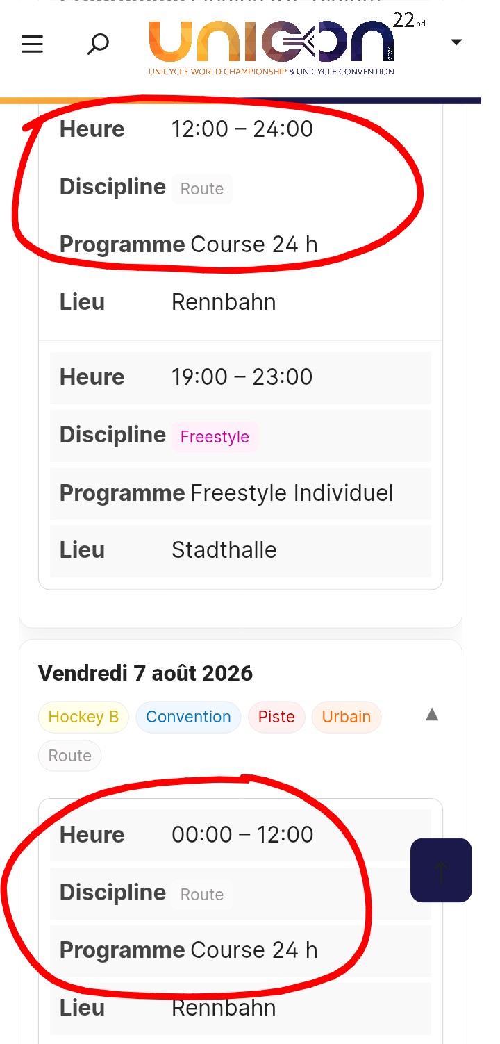 De ce que je vois, il y a quatre épreuves de route de prévues et planifiées : 10 km, marathon, critérium et 24h.