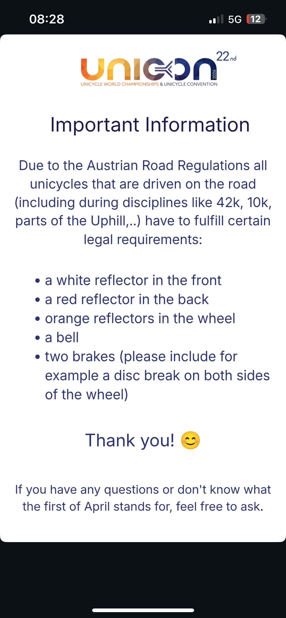 Ils ont d’ailleurs oublié les catadioptres sur les pédales. C’est là que l’on voit que c’est une blague. Ils étaient à deux doigts d’être crédibles. Dommage !