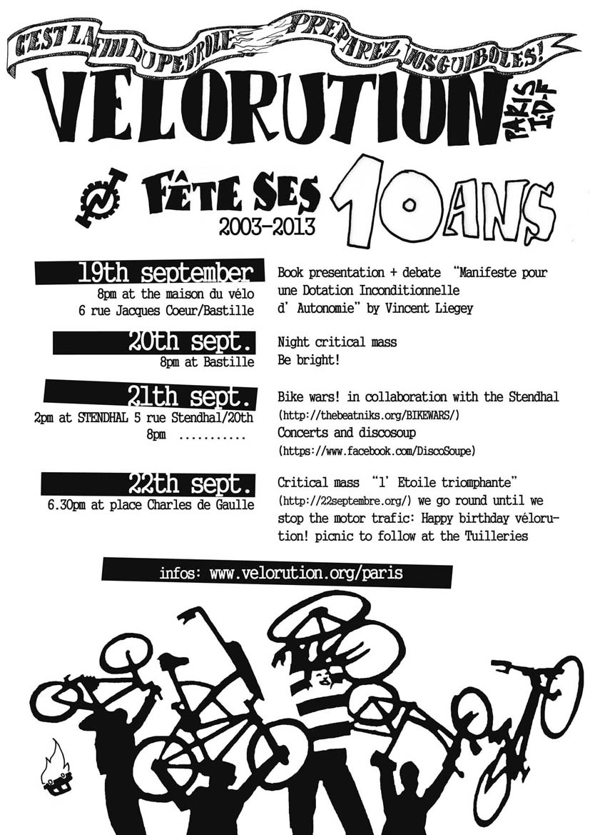 vélorution paris idf a 10 ans! du 19 au 22 sept 2013 / velorution paris turns 10! 19-22th september 2013 Mercredi, 21 Août 2013 17:21 Paris - Évènements