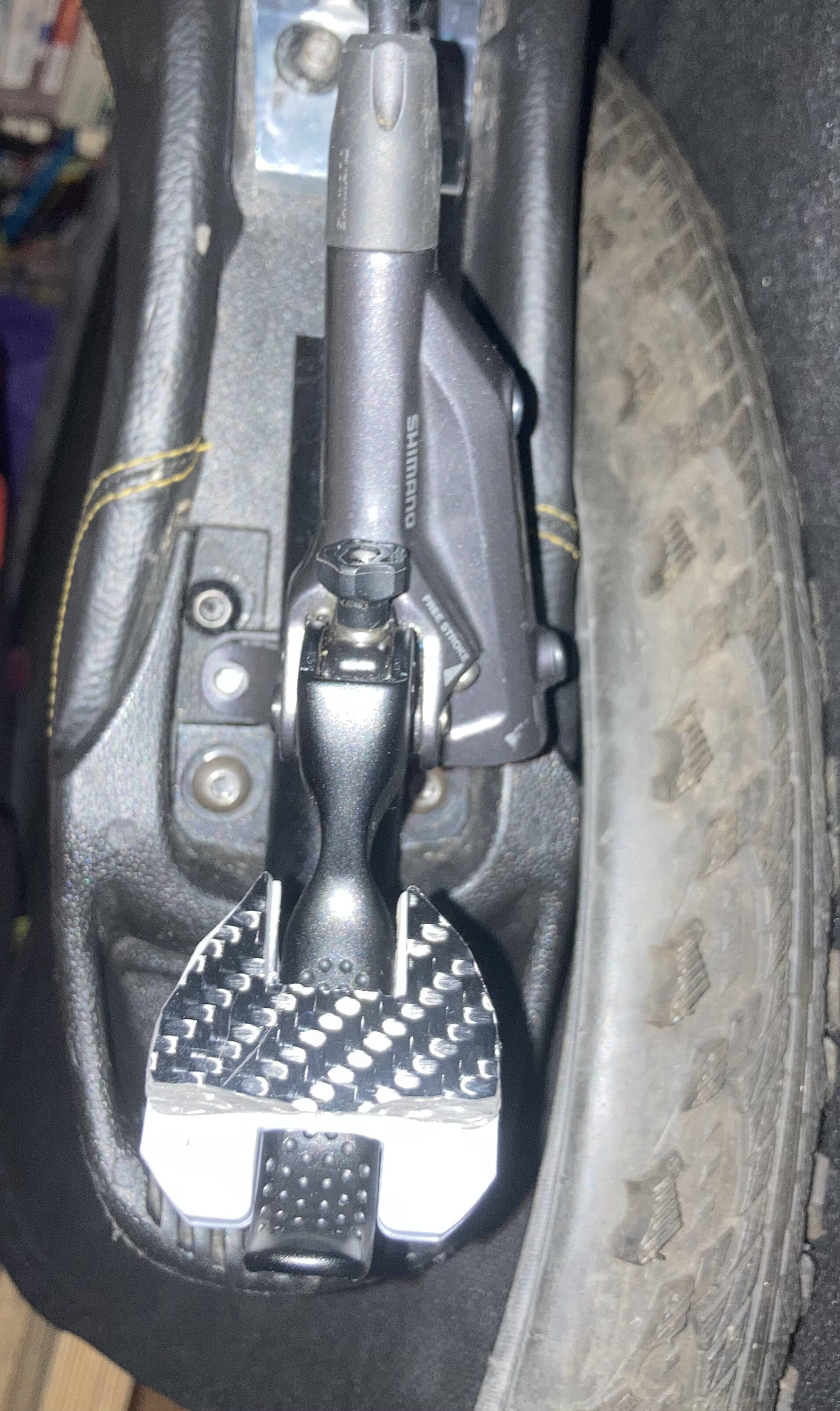 ma volonté première était pour ce projet de n’effectuer aucune modification sur le cadre c’est paris réussi ! De tout faire avec des vis car plus simple pour moi que de souder, ça semble solide alors que j’ai rien collé ni même ajouté de frein filet pour le moment, rassurant