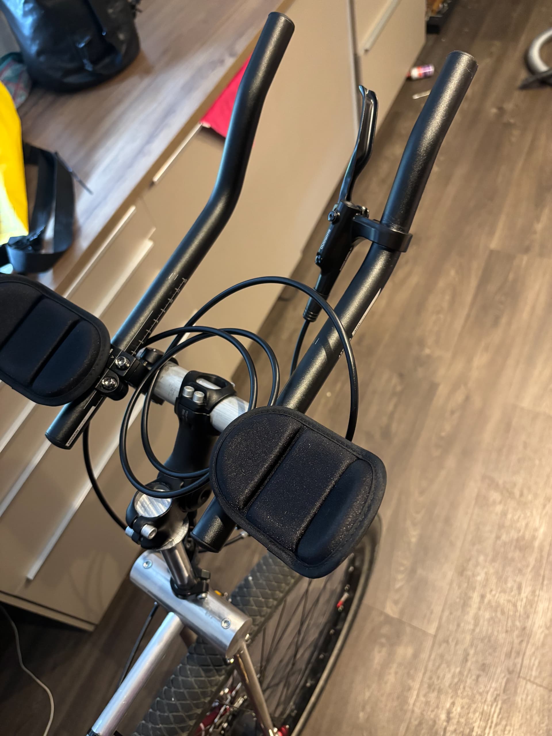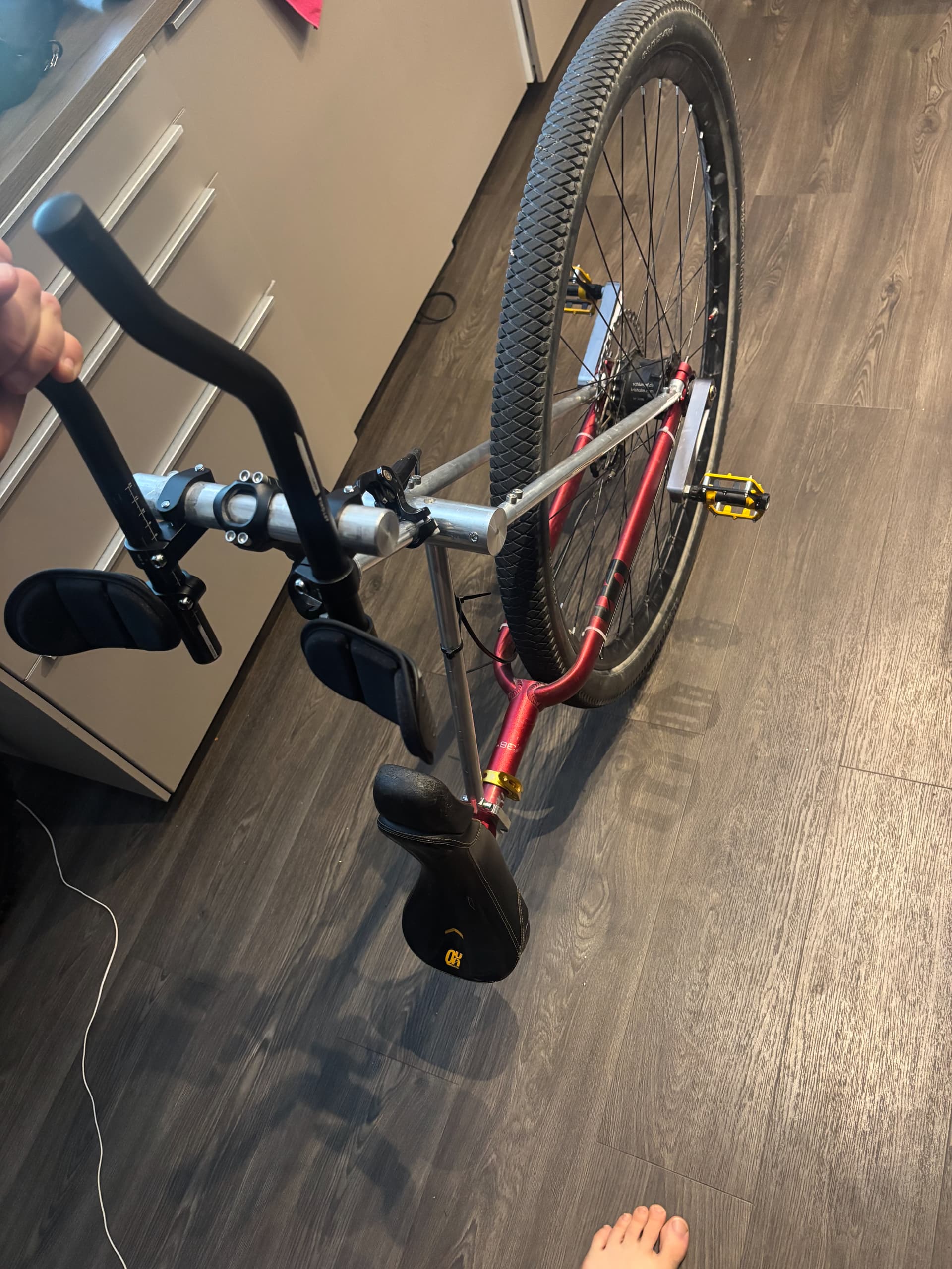 C’est loin d’être terminé, Il me reste la finition esthétique à faire ainsi que des poignées pour pouvoir adopter aisément la posture plus classique comme pour un guidon standard pour un usage plus urbain ou plus lent par exemple..